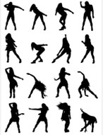 Silhouette snap shots, combined in a quilt of images.