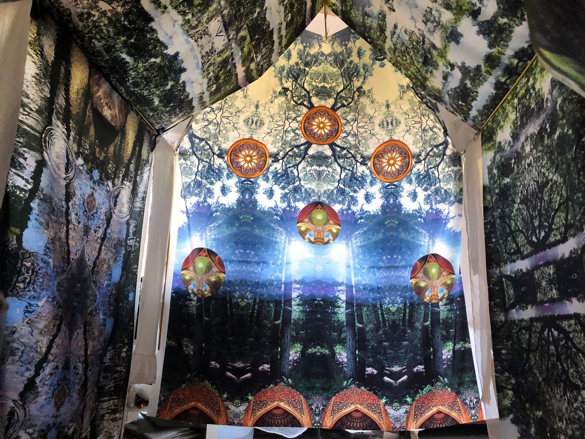 The InTent Art Installation is a multisensory environment that acts as both map and mirror for the inner landscape. Each element is designed to support a unique inner-space trip: